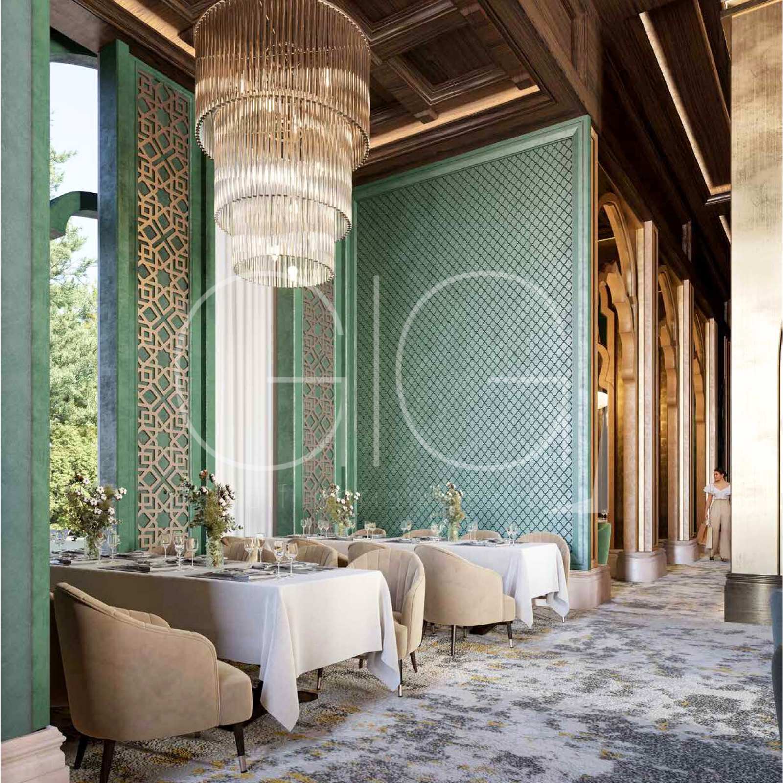Sumérgete en la elegancia del ambiente natural en nuestro restaurante de diseño exquisito.