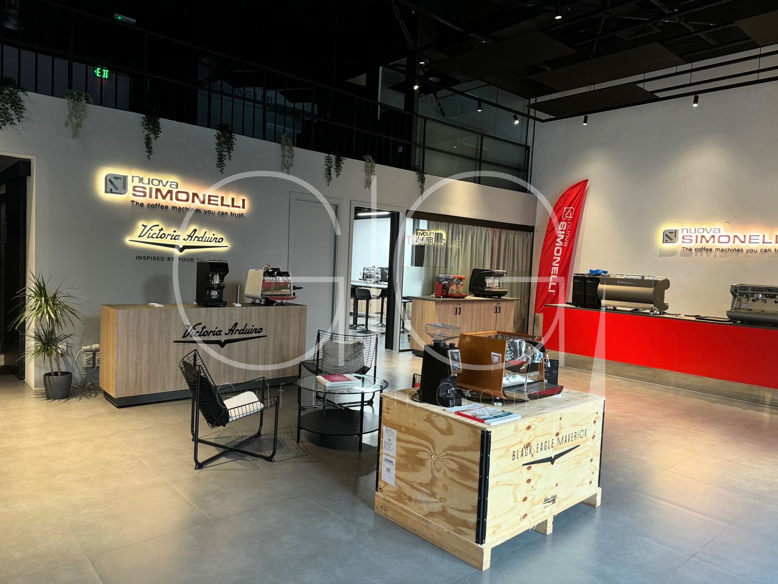 Un showroom sofisticado en un loft urbano, mostrando marcas premium con estilo.